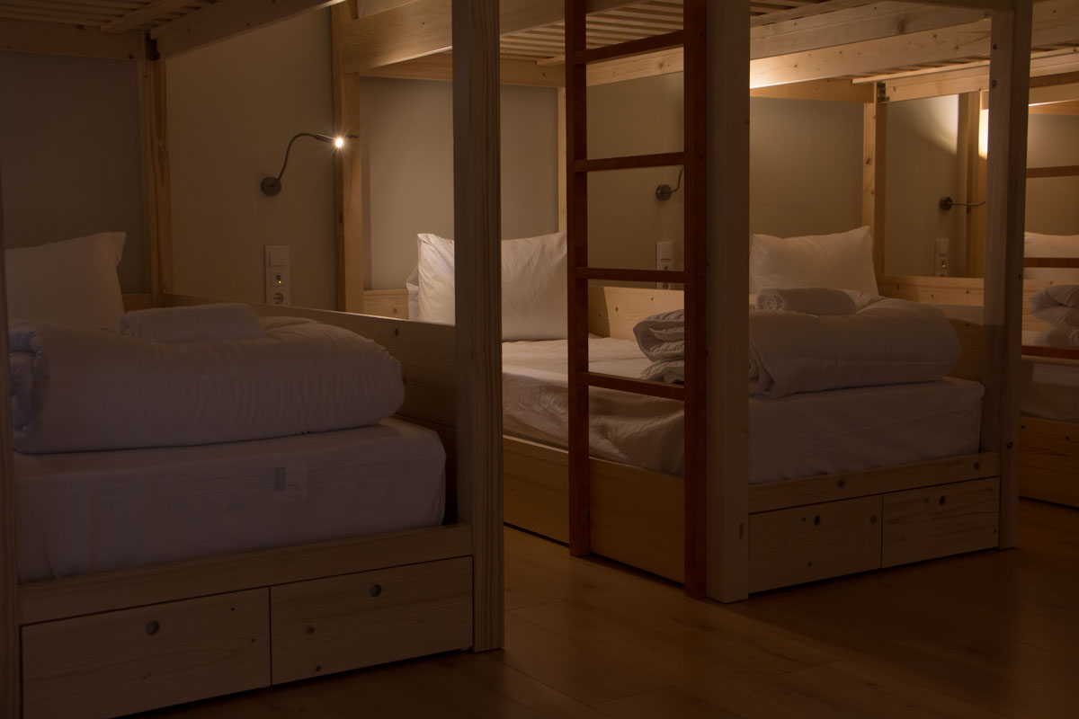 FHS possui um dormitório misto com 14 beliches individuais, permitindo simultaneamente o alojamento do turista individual ou em pequenos grupos. Inspirado nos albergues tradicionais, são verdadeiros precursores da hotelaria moderna.